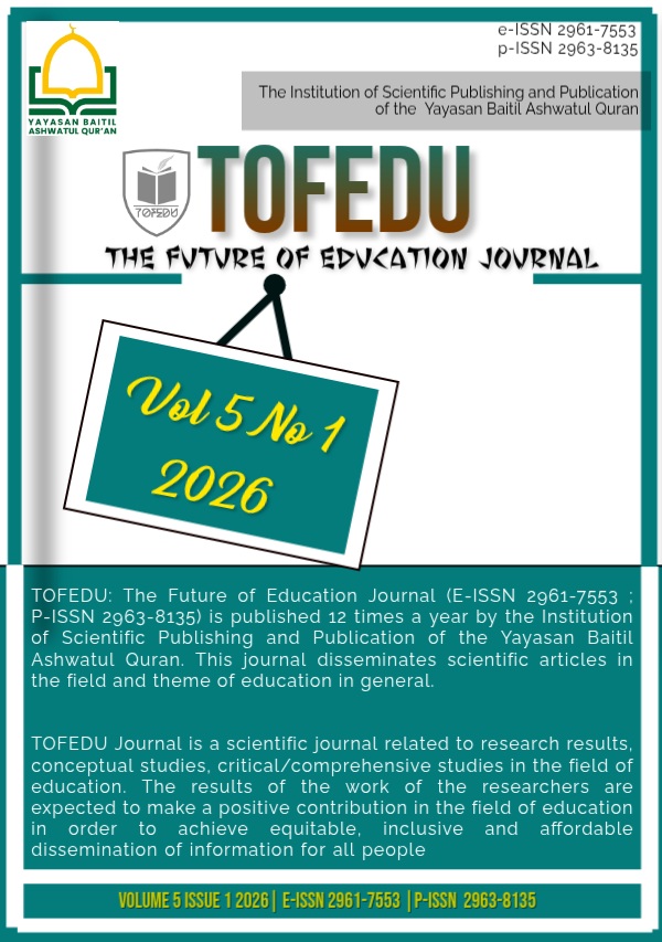 TOFEDU: The Future of Education Journal has been accredited by the Minister of Research and Technology/Head of BRIN as an academic journal, PAGE. No. 177/E/KPT/2024. (SINTA 5)